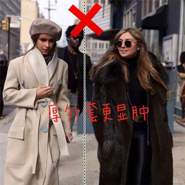 秋冬市面上很多毛毛外套或加厚羽绒服,但背厚的姐妹千万别碰!这些款式会放大背部体积,视觉上又矮又壮,一点都不美观。