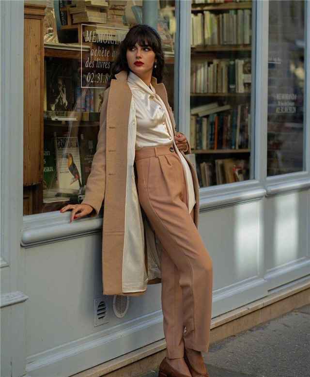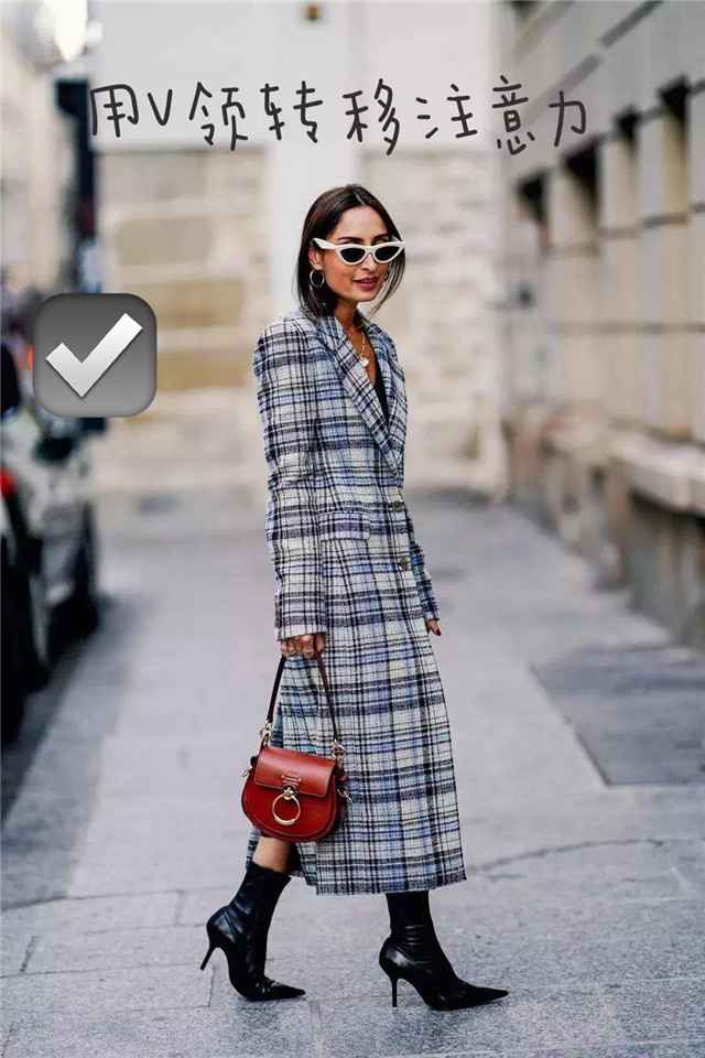 大翻领外套纵向延伸效果强,显脖子修长,还自带气场。但胸大的姐妹要小心,选不好会显宽。