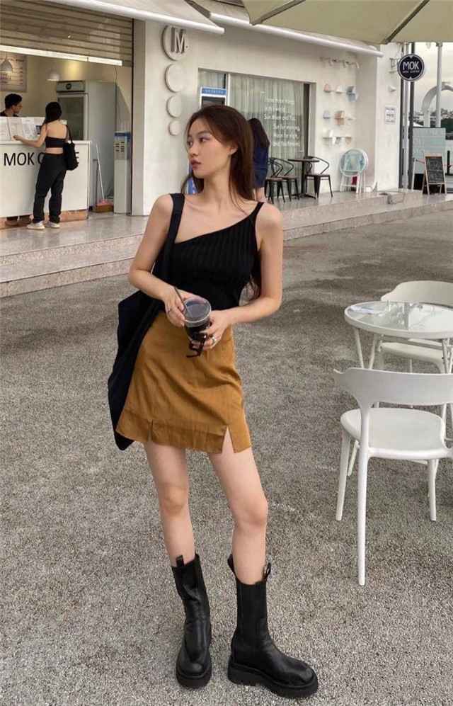 单肩或斜肩款利用对角线拉长视觉,露肤显锁骨,轻松凹出天鹅颈。但一字肩不适合,会暴露缺点。