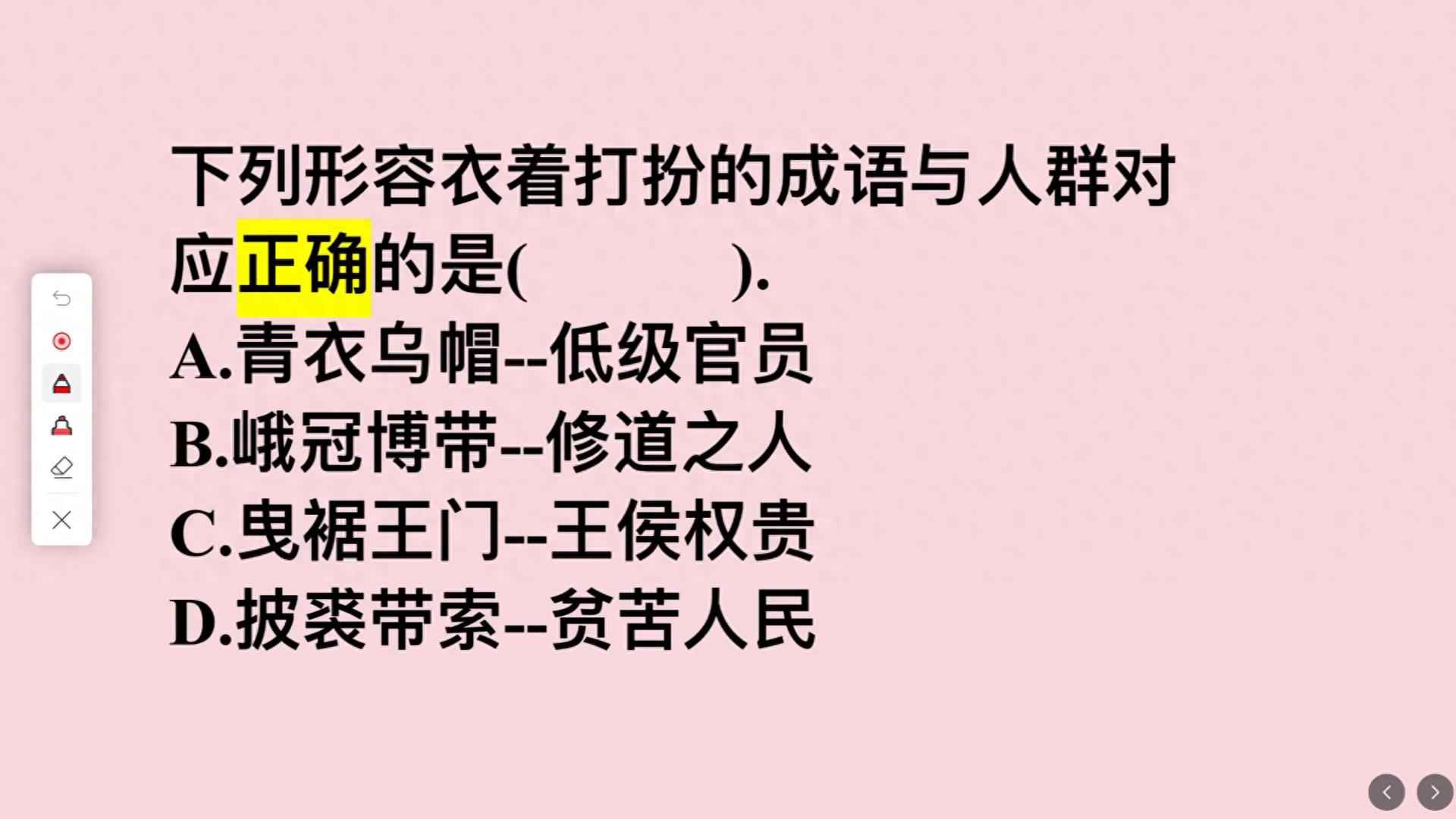 大家好!今天我们来一起看看这道有趣的题目:下面这些形容衣着打扮的成语,分别对应哪些人群呢?正确的选项是哪一个?