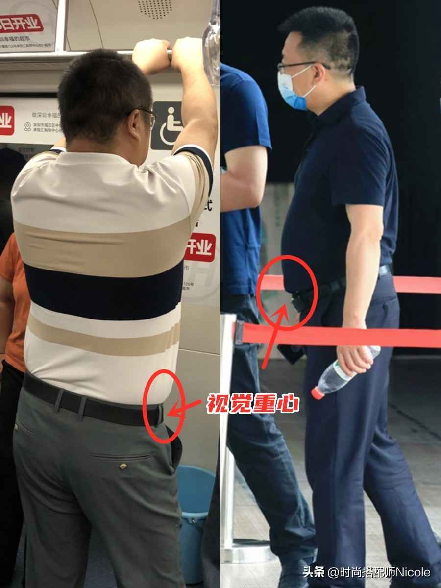在皮带的挤压下,啤酒肚显得更突出,侧面看简直圆滚滚的,毫无线条感可言。