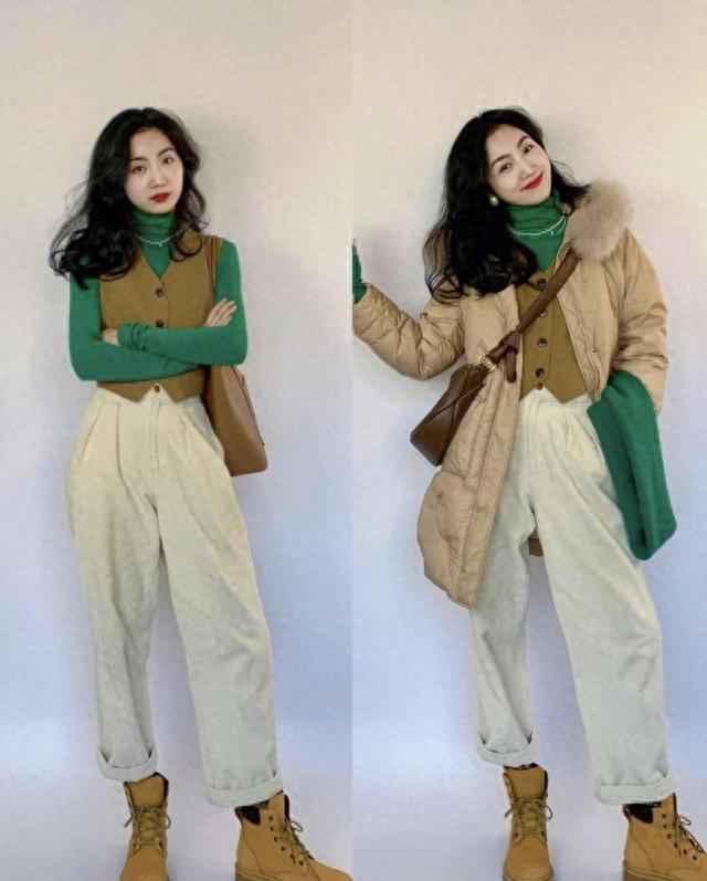 结合最新趋势,咱们可以把经典搭配做点小更新:第二套里的蓝色牛仔裤换成微喇款式,配厚底乐福鞋,更显利落;第六套的卡其色棉服改用热巧克力色环保面料,温暖又环保;第九套加上叠戴金属项链,下身穿皮质legging,质感瞬间提升。