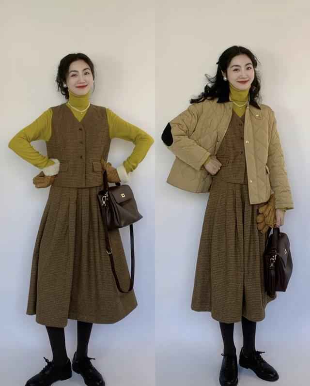 轻薄羽绒服配亮黄色,冬天穿暖和不臃肿。翻领设计显时尚,连帽卫衣裙休闲感满分,适合日常出街。