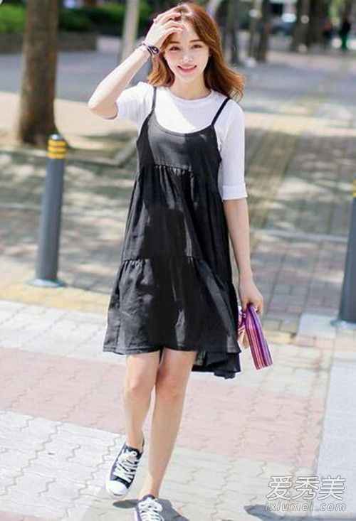 这是一个很多人都会踩的坑:裙摆和鞋帮千万别“打架”!如果你的裙子长度刚好卡在小腿最粗的地方,又配了一双高帮的帆布鞋或靴子,那无异于把腿部最不理想的部位给强调了出来,显得腿又短又粗-7。