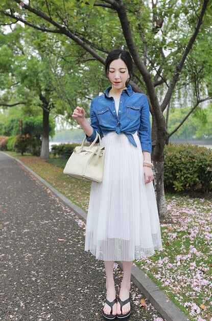 休闲出游:浅杏色的连衣裙是王道,单穿就很有味道,外面可以随意搭件牛仔外套或开衫-8。或者用浅杏色T恤搭配蓝色牛仔裤和小白鞋,经典不出错。