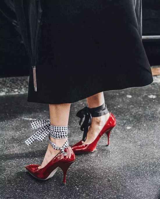 @时髦精小王: 买了一双正红色的尖头高跟鞋,除了搭配小黑裙,还能怎么穿出彩?