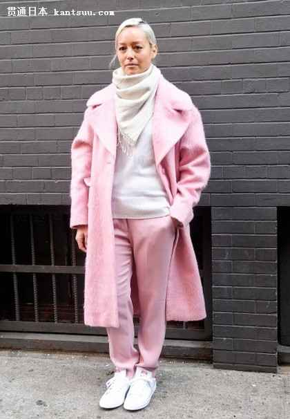 内搭首选白、灰、黑:尤其是白色,就像反光板,能提亮面部肤色,让粉色外套看起来更干净清新,是避免显黑显土的关键-4-7。