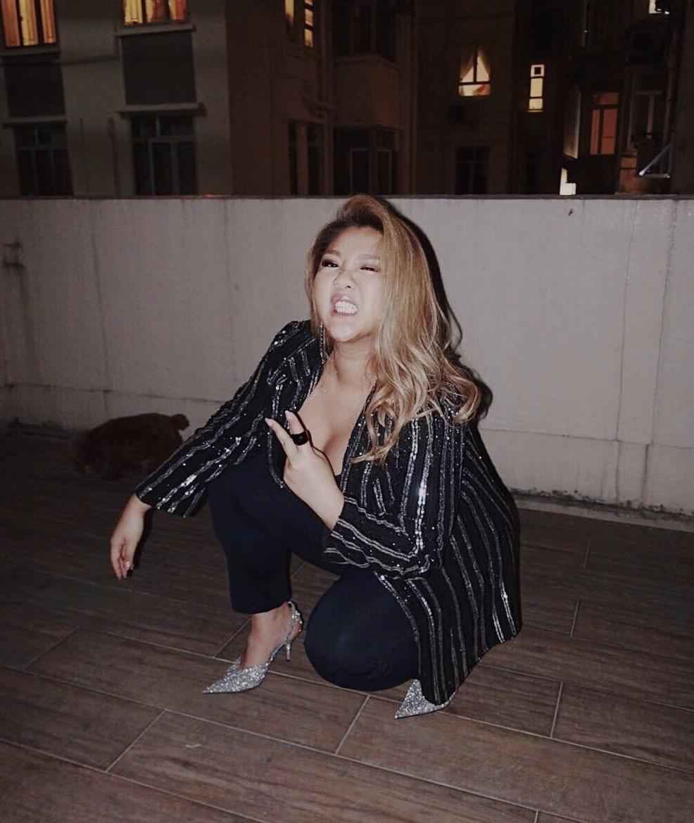 郑欣宜用亮片西装搭配黑色内搭,180斤照样性感迷人