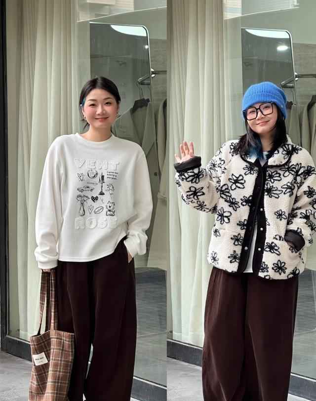 现在我的固定搭配是:云朵裤+修身针织衫,针织衫长度刚好到胯骨,遮住最宽的髋部,但不过臀,坐下不堆布料,站起来不勒肉。