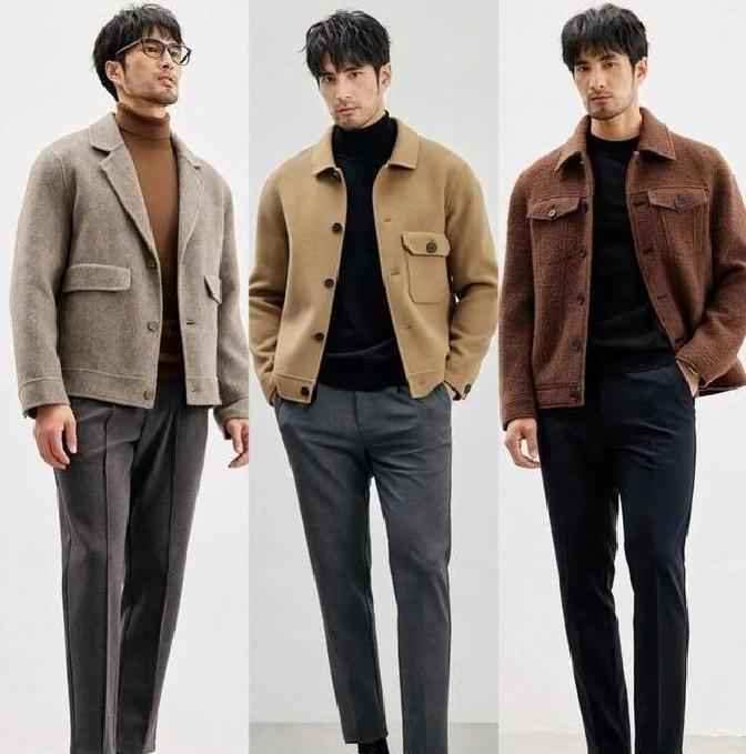短款外套更显利落,尤其适合175cm以下男士,能视觉拉长比例。选择合身剪裁的休闲外套,兼顾成熟与活力。