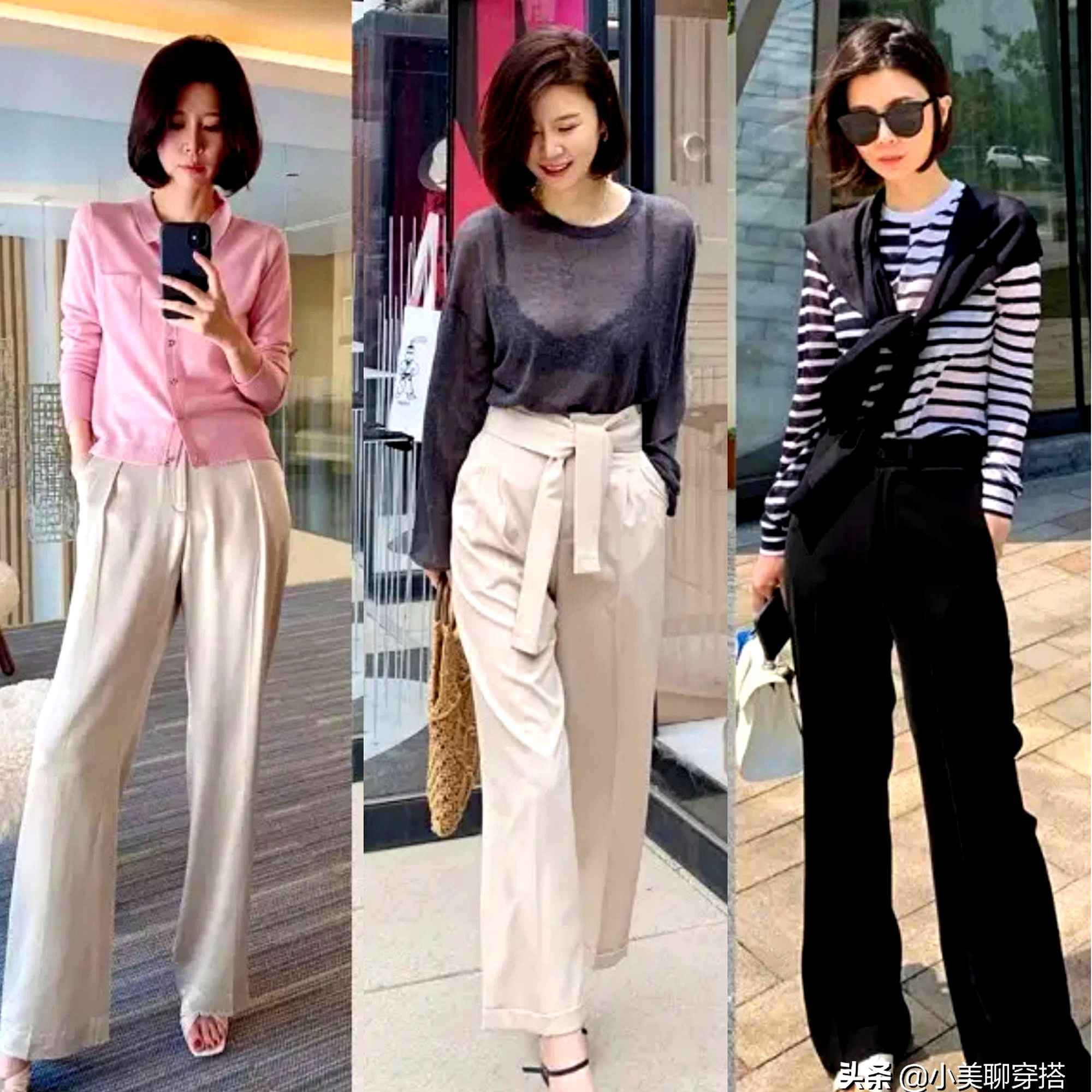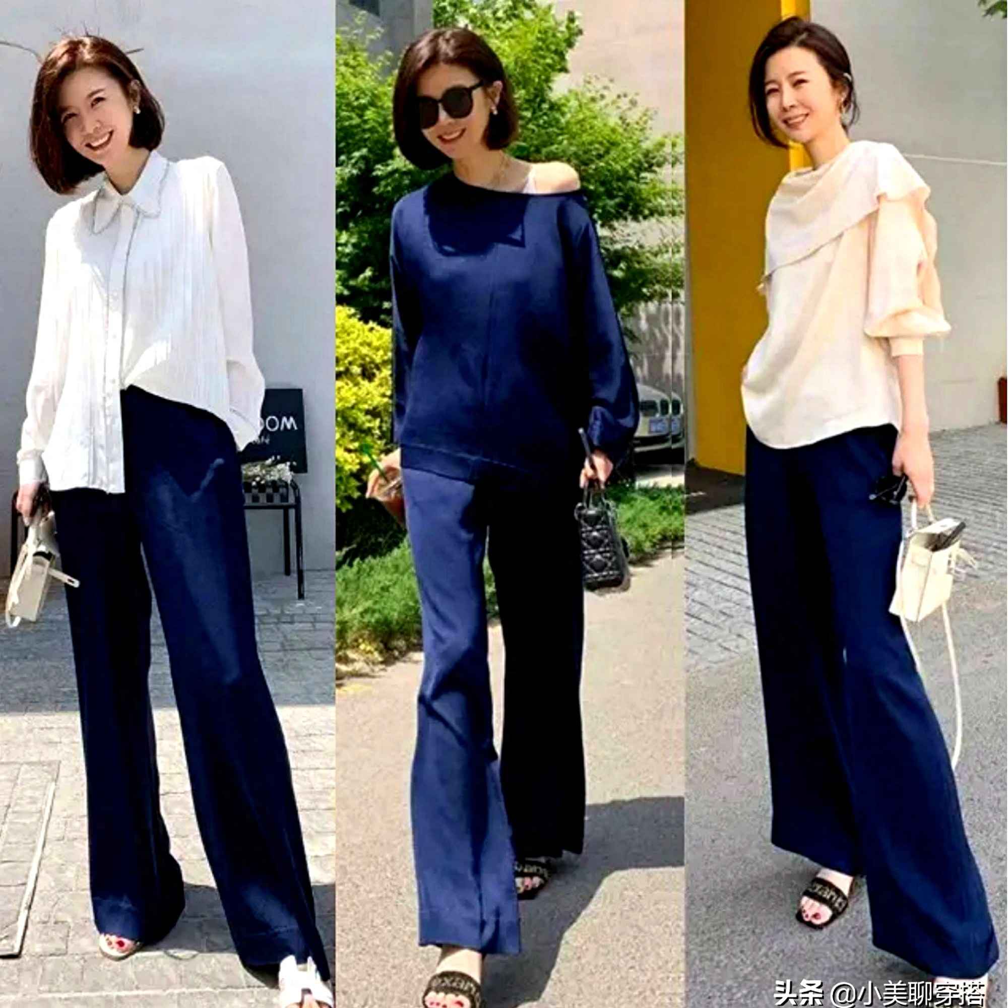 显瘦三要素:挺肩设计(如西装或垫肩衬衫)、直筒下装、露踝或尖头鞋。视觉上拉长身形。