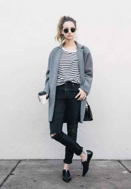 说到春秋季必不可少的单品,风衣必须拥有姓名。卡其色风衣内搭黑白条纹衫,堪称经典中的经典。风衣的纵向线条和洒脱气质,能很好地驾驭条纹,营造出文艺又率性的氛围-3。这个组合的精髓在于内外的长度和松弛度,风衣自然敞开,条纹衫不必扎得太紧,微微露出下摆,再配一条直筒牛仔裤,走路带风说的就是你。同样,工装风衬衫外套也能和条纹衫碰撞出复古潮流的火花,军绿色工装外套内搭一件白底细条纹衫,清爽有型-3。