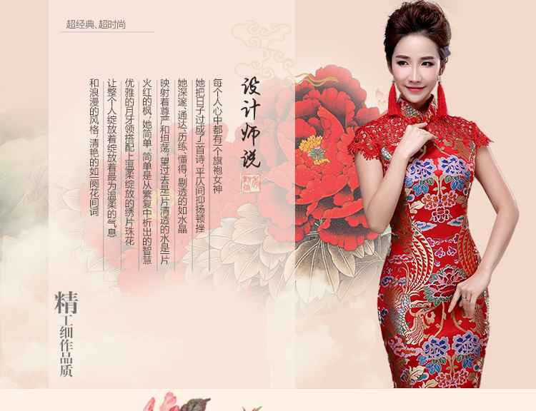 身材高挑的姐妹:恭喜你,简直是“行走的衣架”!可以大胆尝试更能展现东方女性曲线美的鱼尾裙摆式旗袍礼服,或者气势十足的宽摆长裙-7。那些带有立体刺绣、华丽云肩设计的款式,你能很好地驾驭,穿出“大女主”的气场。
