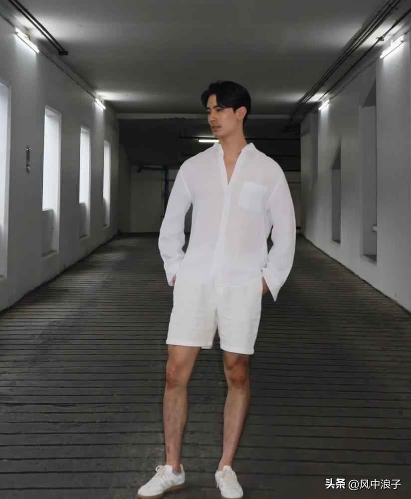 直筒白色长裤堪称万能单品,搭配T恤清爽休闲,搭配衬衫立马变身轻熟型男。注意裤长盖过鞋面1-2厘米,利落不拖沓。