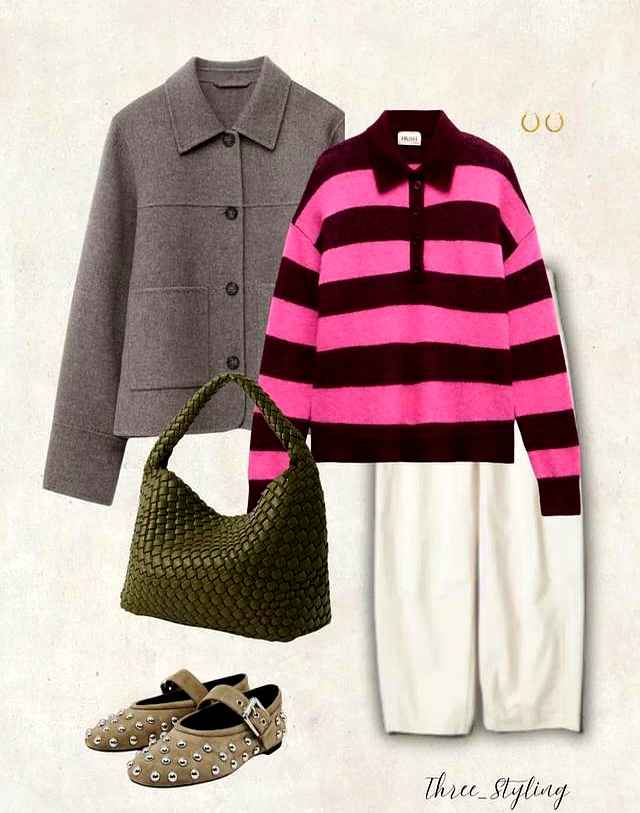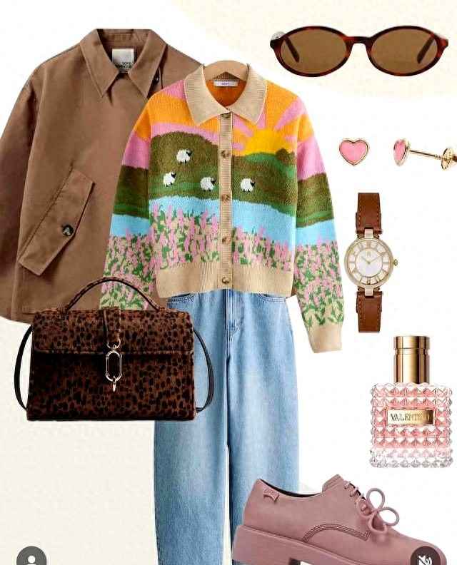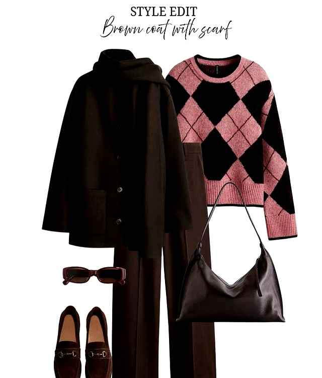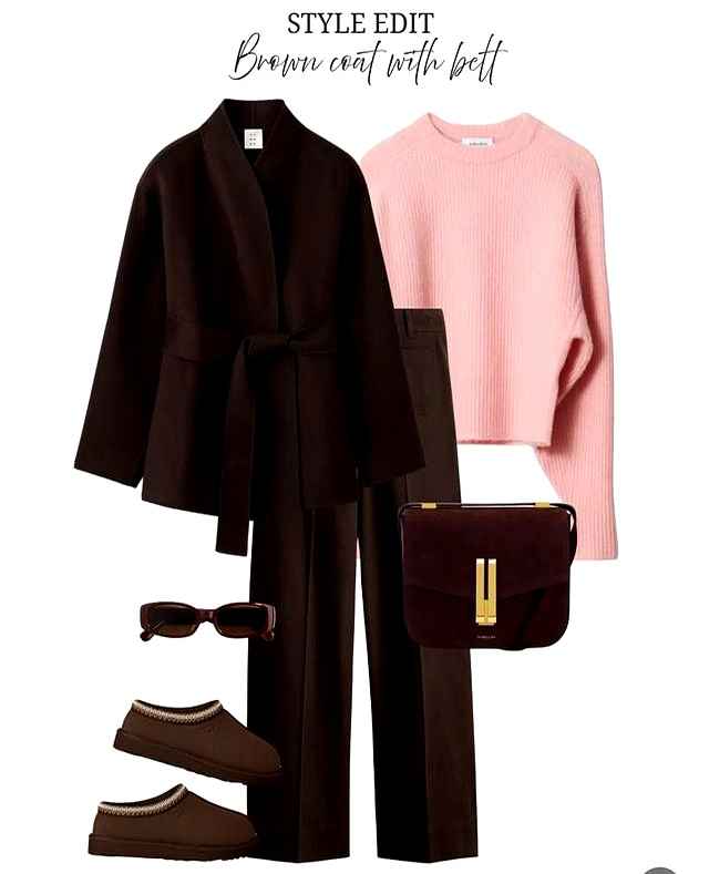 桃粉色加咖色块,一秒解决搭配难题。