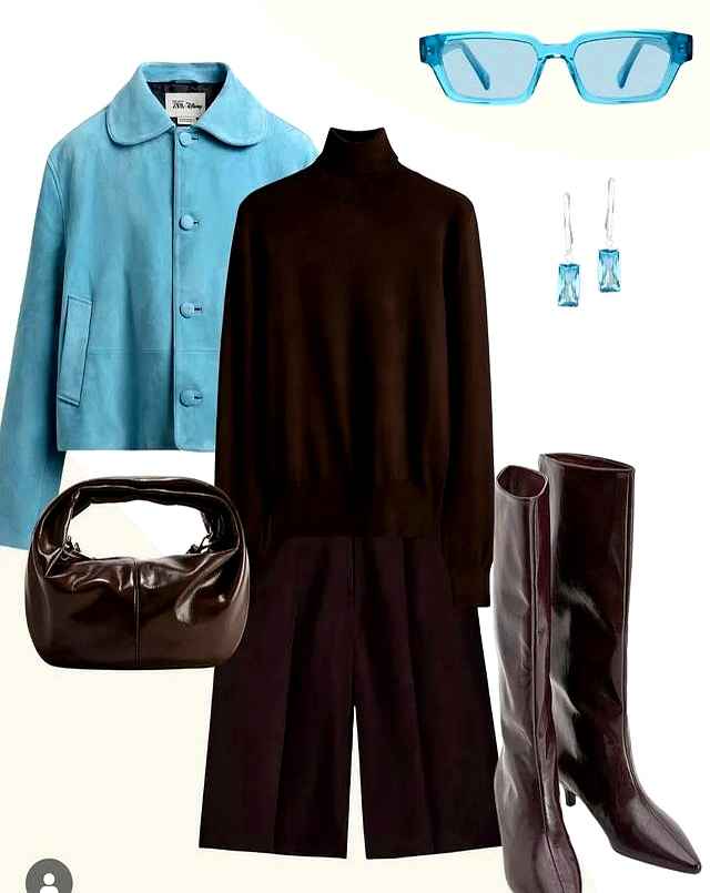 冰岛蓝作为内搭,暗沉的外套瞬间就透气了。