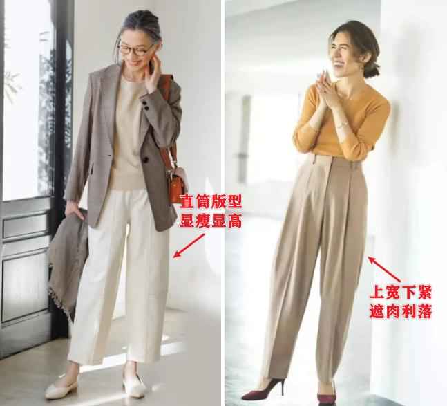 对于中年女性,裤子想显瘦显高,更推荐这几款: