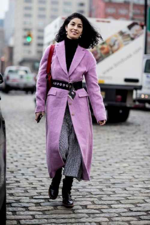 配深灰色裤子:这可能是被严重低估的“天作之合”!如果你觉得搭配紫色很累心,闭眼入深灰色裤子准没错-8。紫色那份浓郁的女人味,遇到低调内敛的灰色,瞬间就升华成了高级的知性气质,特别适合通勤职场-3-6。搭配乐福鞋或短靴,走路都带风。